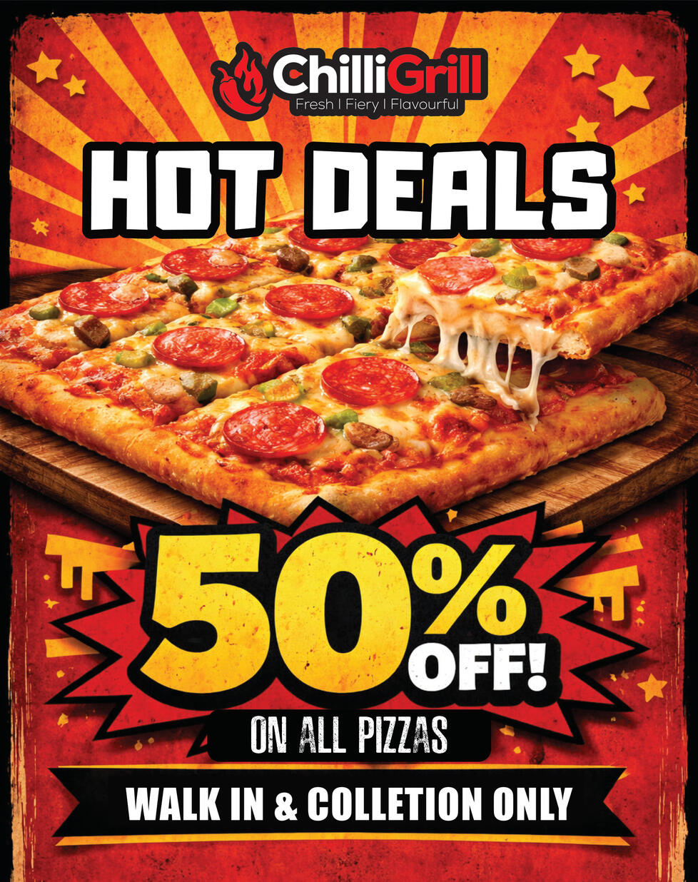 50% off all pizzas for a limited time